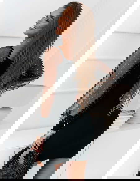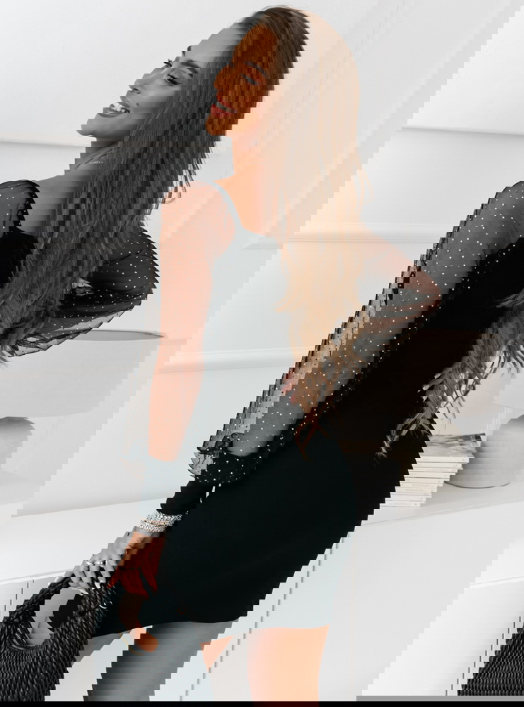 Czarna dopasowana sukienka z tiulowymi ozdobnymi rękawami Danna