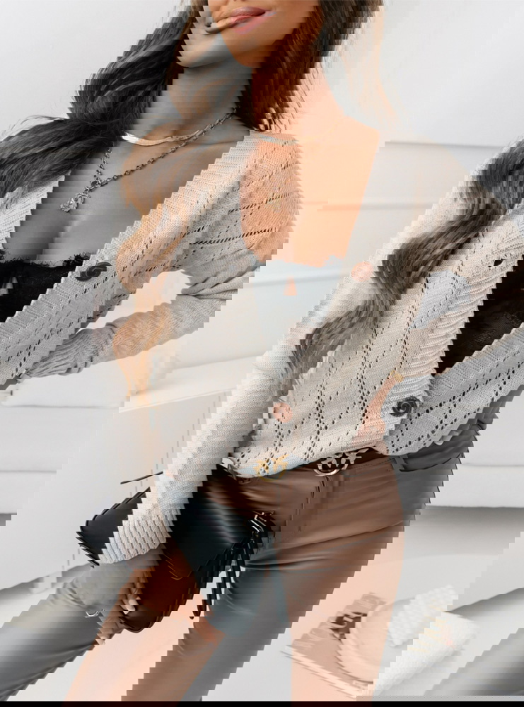 Beżowy ażurkowy sweter zapinany na guziki z dekoltem w serek Betsy