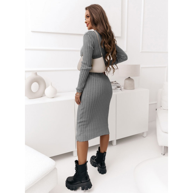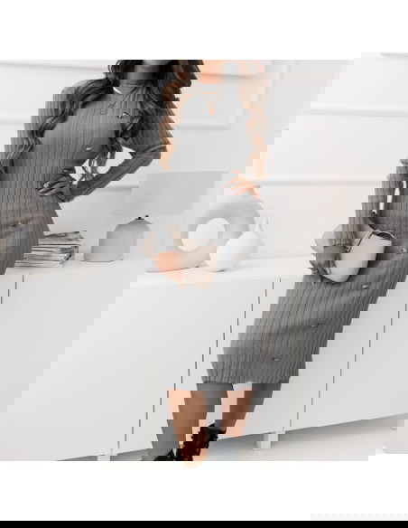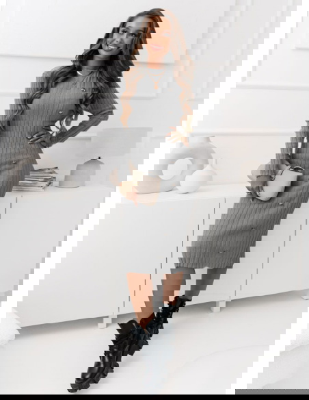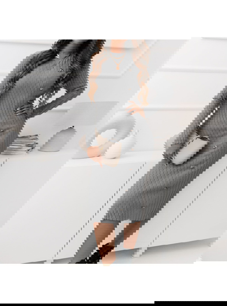 Szara sweterkowa prążkowana sukienka z ozdobnymi guzikami Daniella W tej sukience każda kobieta poczuje się pewnie i stylowo, niezależnie od okazji.