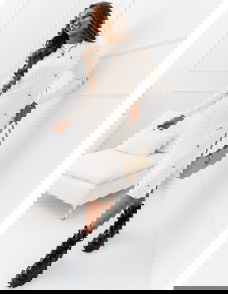 Sweterkowa prążkowana sukienka z ozdobnymi guzikami Daniella - ecru