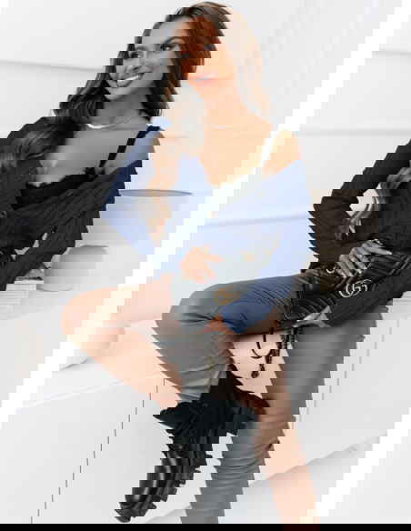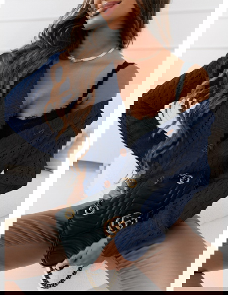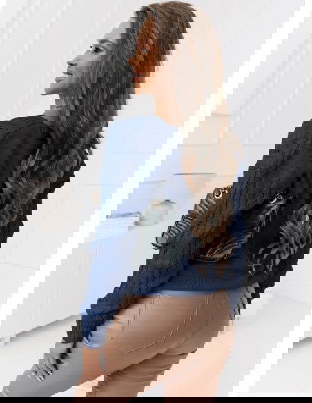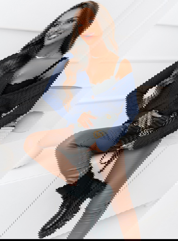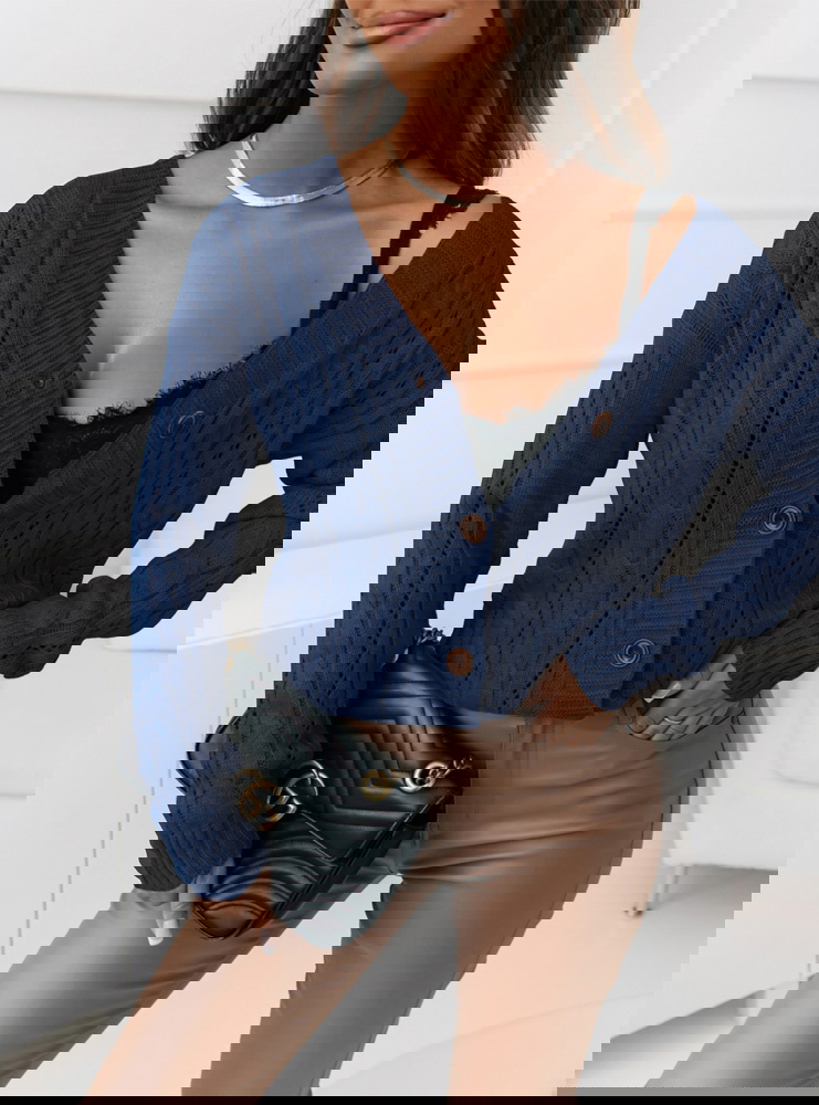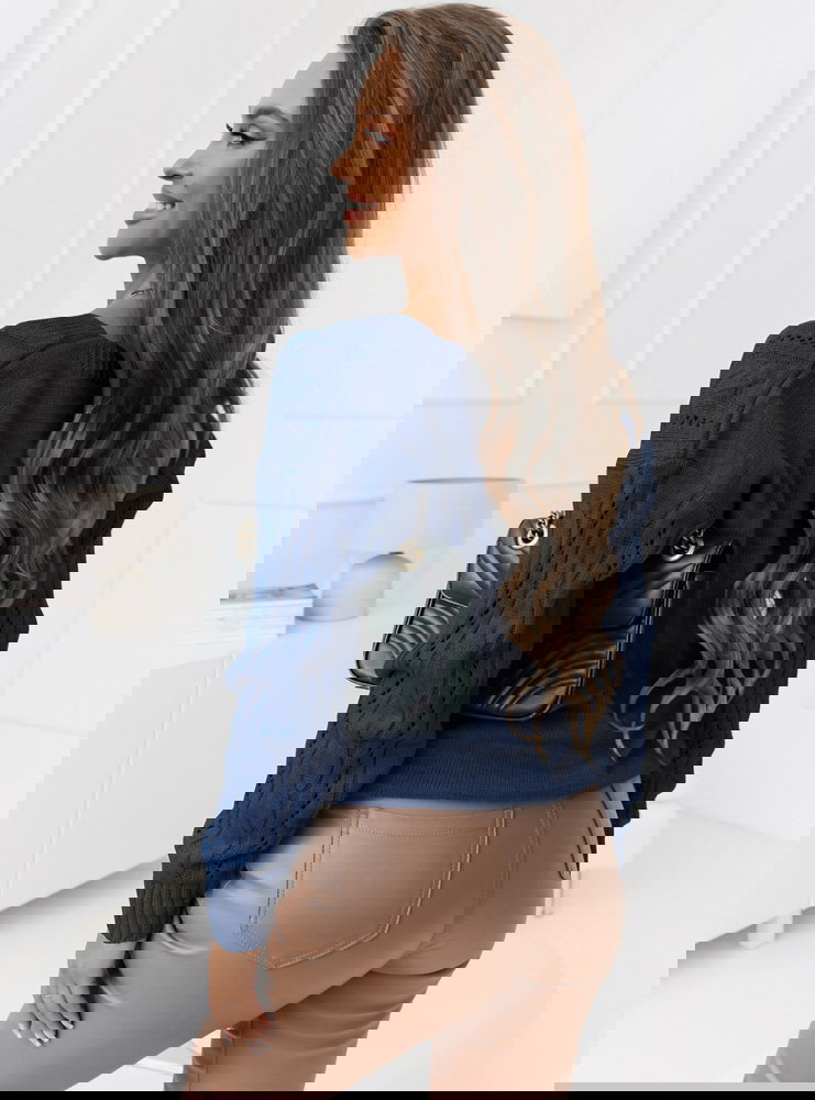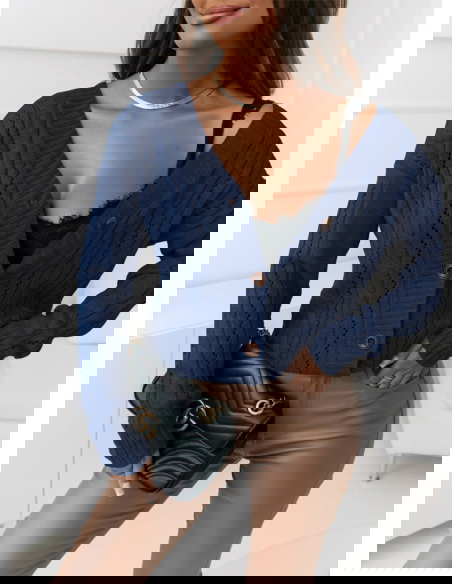 Granatowy rozpinany sweter z ozdobnym splotem Emily