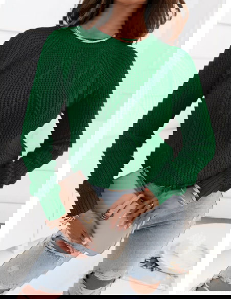 Szmaragdowy sweter z ozdobnym splotem i perełkami Athena