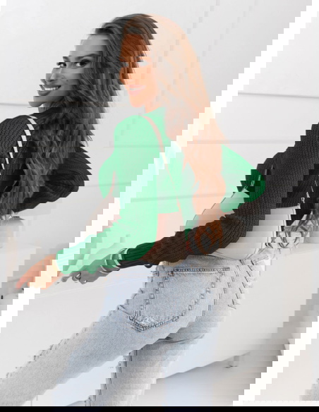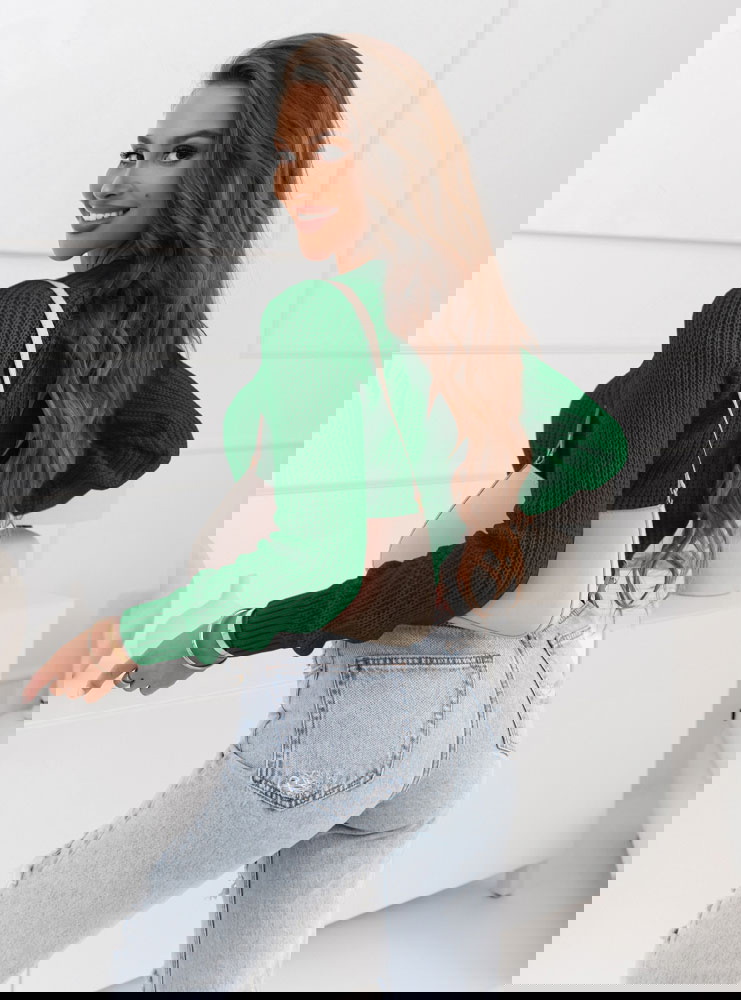 Szmaragdowy sweter z ozdobnym splotem i perełkami Athena Sweter jest nie tylko praktyczny, ale również modne akcentuje sylwetkę.