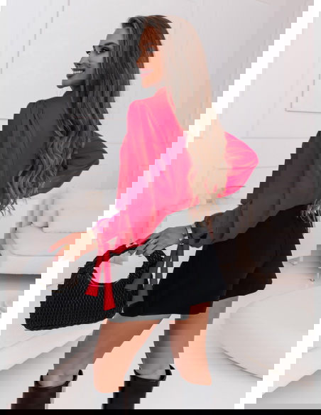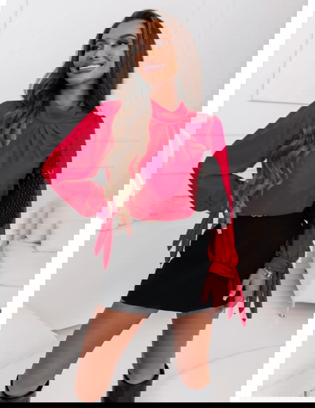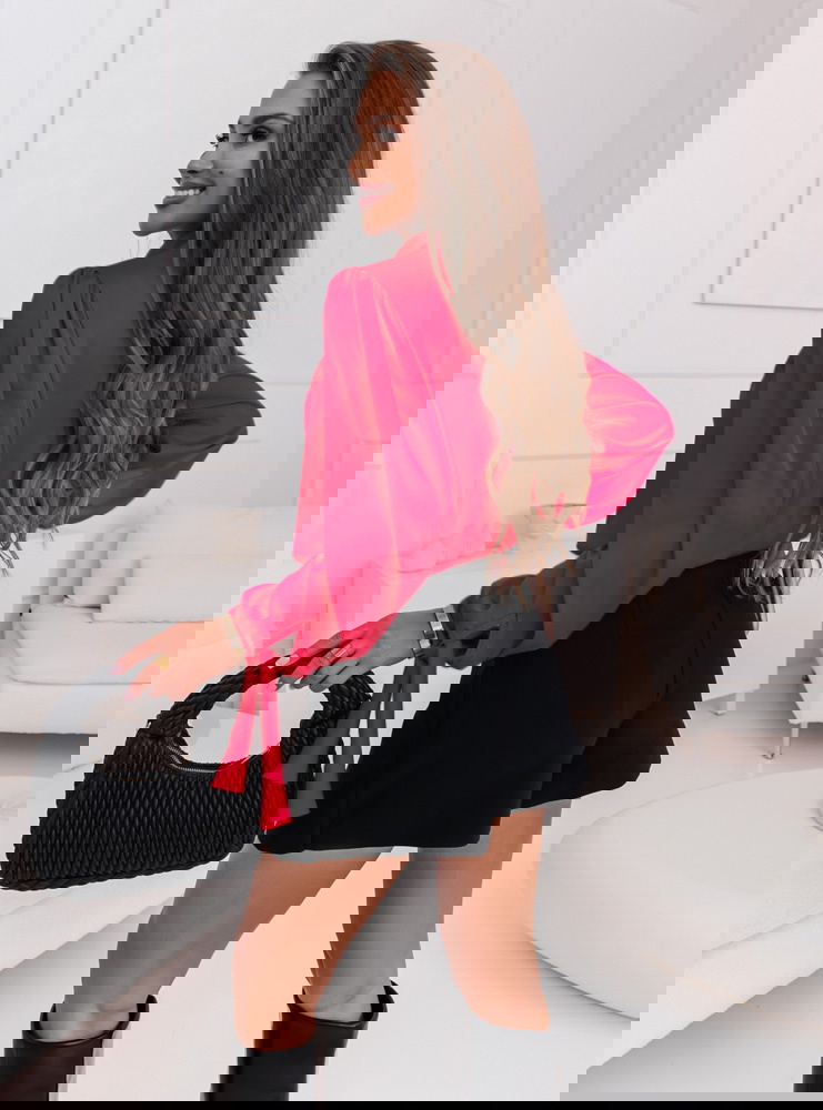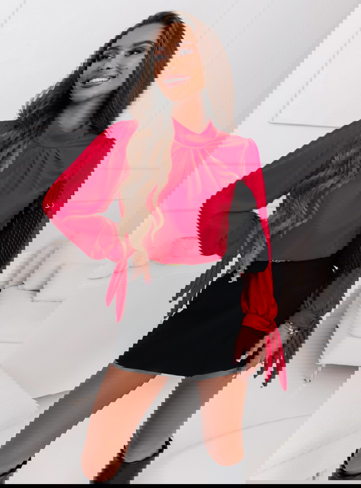 Malinowa satynowa bluzka z wiązanymi rękawami Fione To świetny wybór dla osób, które chcą wyróżnić się z tłumu i dodać swojej stylizacji odrobinę koloru.