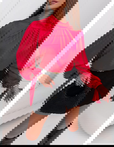 Malinowa satynowa bluzka z wiązanymi rękawami Fione