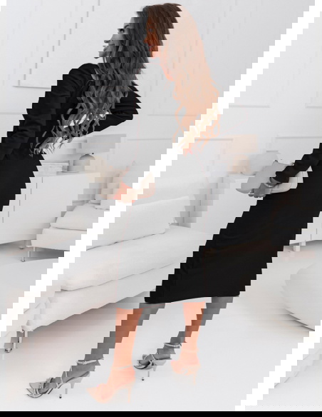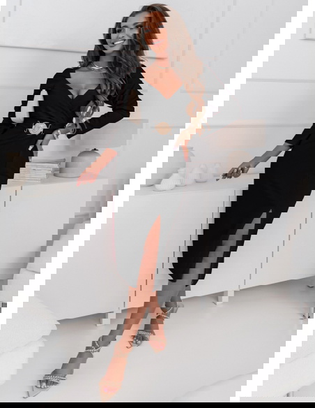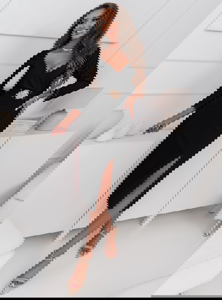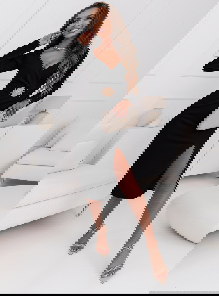 Ozdobny pasek w talii jest efektownym akcentem, który nadaje sukience indywidualności i szyku. Czarny kolor sukienki jest zawsze modne i ponadczasowe, doskonale nadający się na różne okazje. Sukienka Freya to doskonała opcja na wieczorne wyjścia, uroczyste przyjęcia i inne specjalne okazje, gdzie chcesz wyglądać elegancko i szykownie. Czarna dopasowana sukienka midi z ozdobnym paskiem Freya to klasyka, która pozostaje ponadczasowa, a jednocześnie zawsze modna i efektowna.