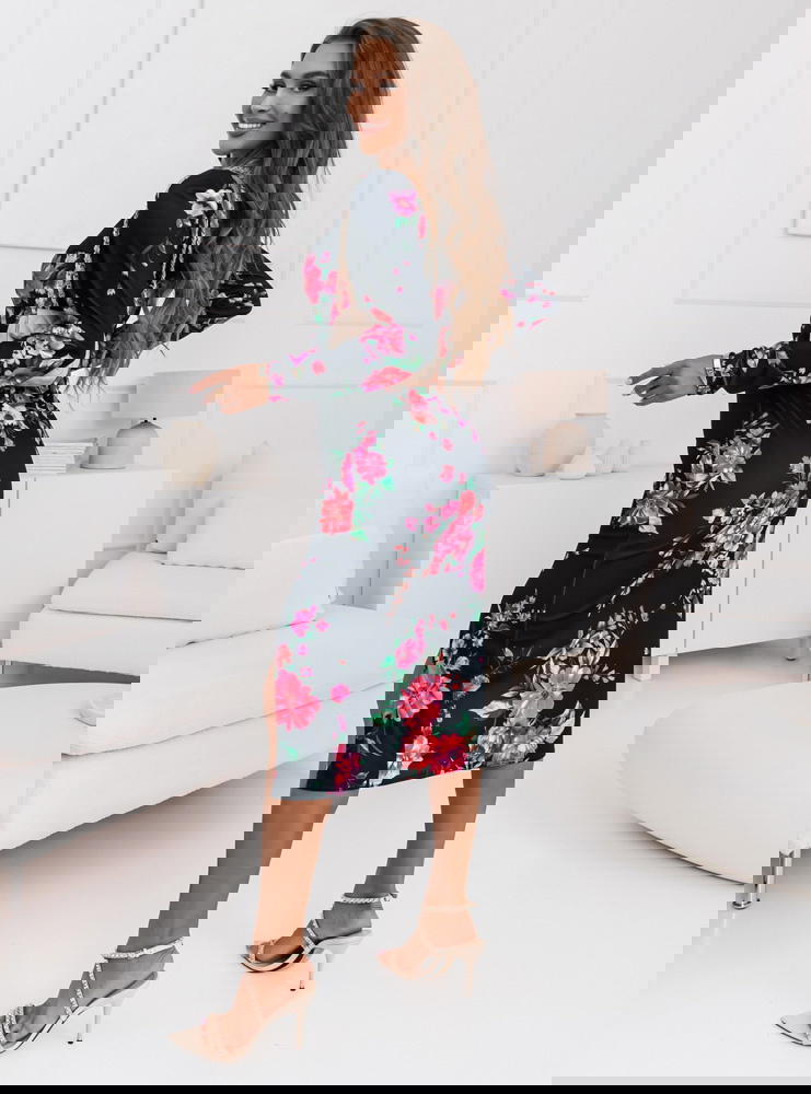 Dopasowana sukienka midi z ozdobnym paskiem Freya - D20
