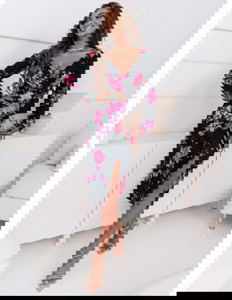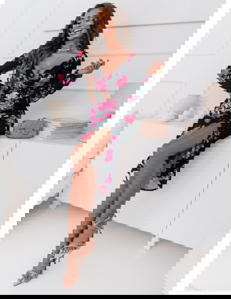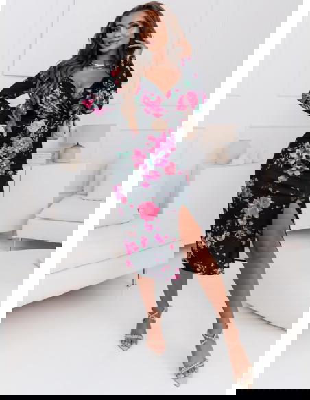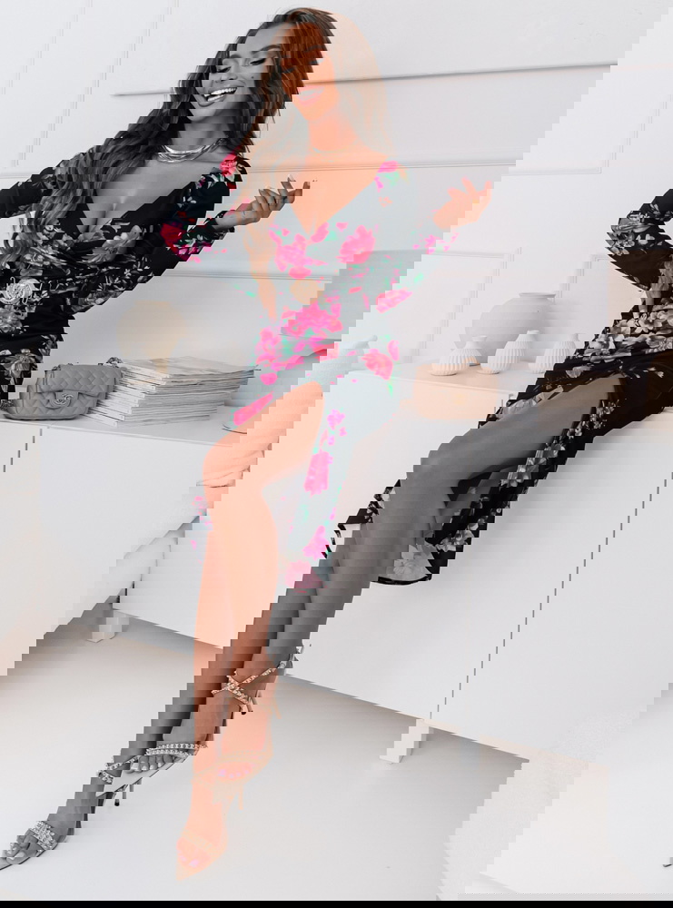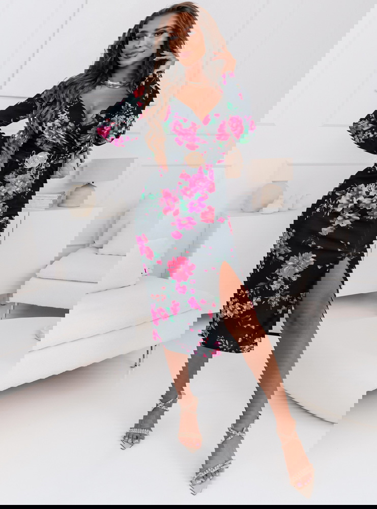To wyrafinowana i stylowa kreacja, która przyciąga uwagę swoim oryginalnym designem. Jej dopasowany fason doskonale podkreśla kobiecą sylwetkę, tworząc elegancki wygląd. Ozdobny pasek w talii jest nie tylko efektowny, ale także dodaje sukience indywidualności i wyjątkowego charakteru. Ta sukienka to doskonały wybór na wieczorne wyjścia, uroczyste przyjęcia i inne specjalne okazje, gdzie chcesz wyglądać wyjątkowo i szykownie.