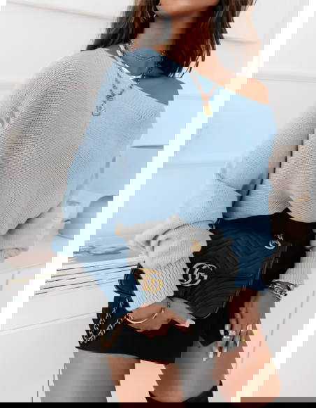 Błękitny oversizowy sweter z wiązaniem na plecach Moneka