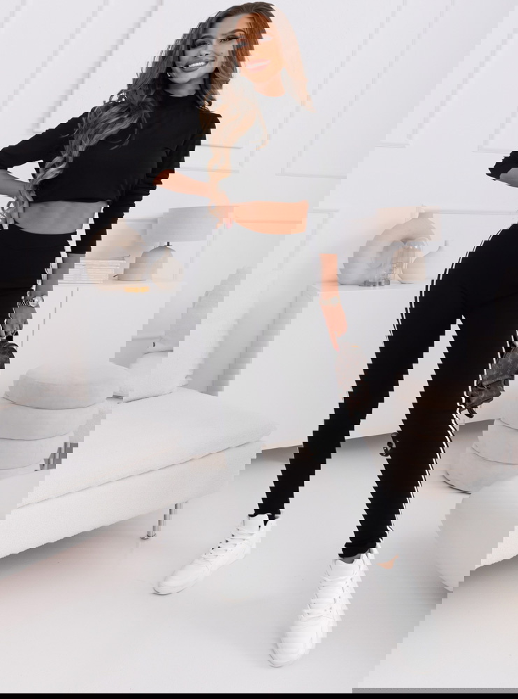 Czarne legginsy z gumą i lampasem Sofija Możesz je nosić zarówno do sportowych butów, jak i do casualowych sneakersów.