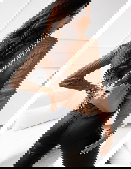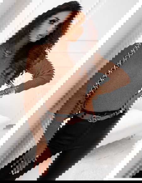 Sweterek z dekoltem w serek Romika - odcienie brązu