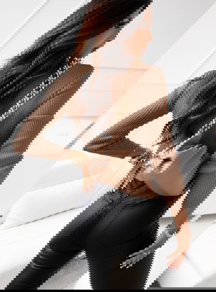Elegancka brązowa bluzka jest kwintesencją klasyki w nowoczesnym wydaniu. Wykonana z wysokiej jakości materiału, zapewnia nie tylko estetyczny wygląd, ale także komfort noszenia przez cały dzień. Jej delikatny i dopasowany krój doskonale podkreśla sylwetkę, a brązowy odcień dodaje głębi i ciepła każdej stylizacji.