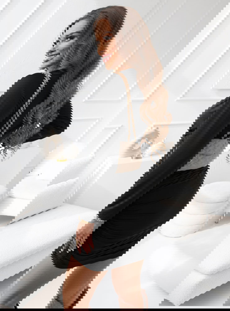 Czarna marszczona sukienka z dekoltem Bahia to wyjątkowo zmysłowa i elegancka kreacja. Kolor czerni jest klasyczny i ponadczasowy, nadając sukience elegancji i wyrazistości. Marszczenia nadają sukience tekstury i interesującej faktury, co czyni ją modnym i efektownym wyborem. Dekolt Bahia dodaje sukience subtelnej zmysłowości i podkreśla dekolt.