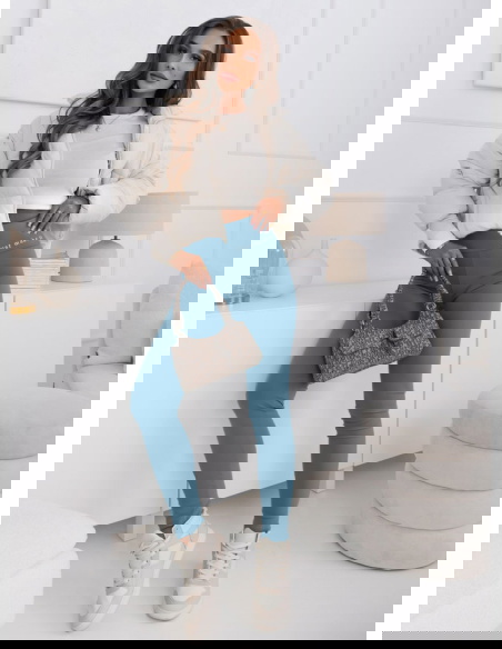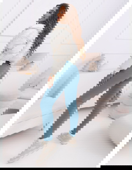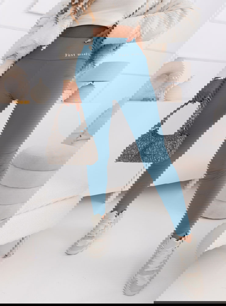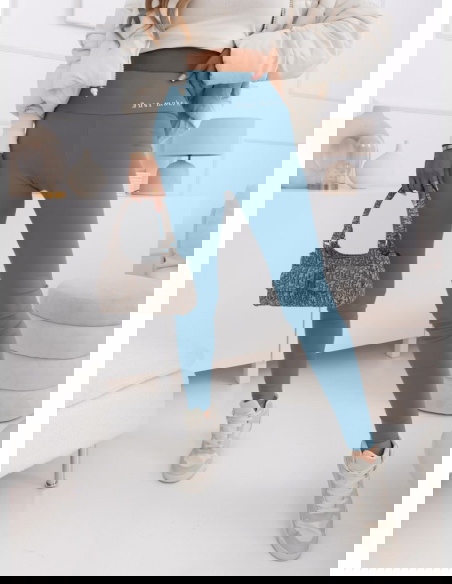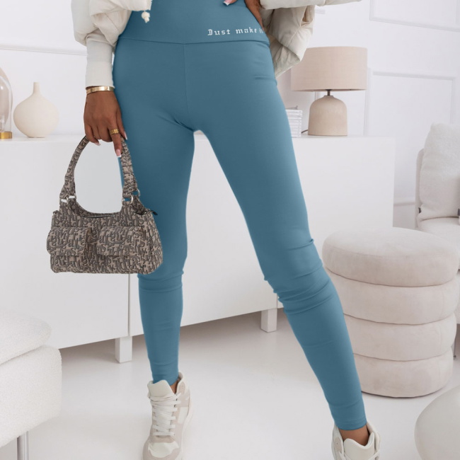 Błękitne legginsy z modnym napisem Adelmire