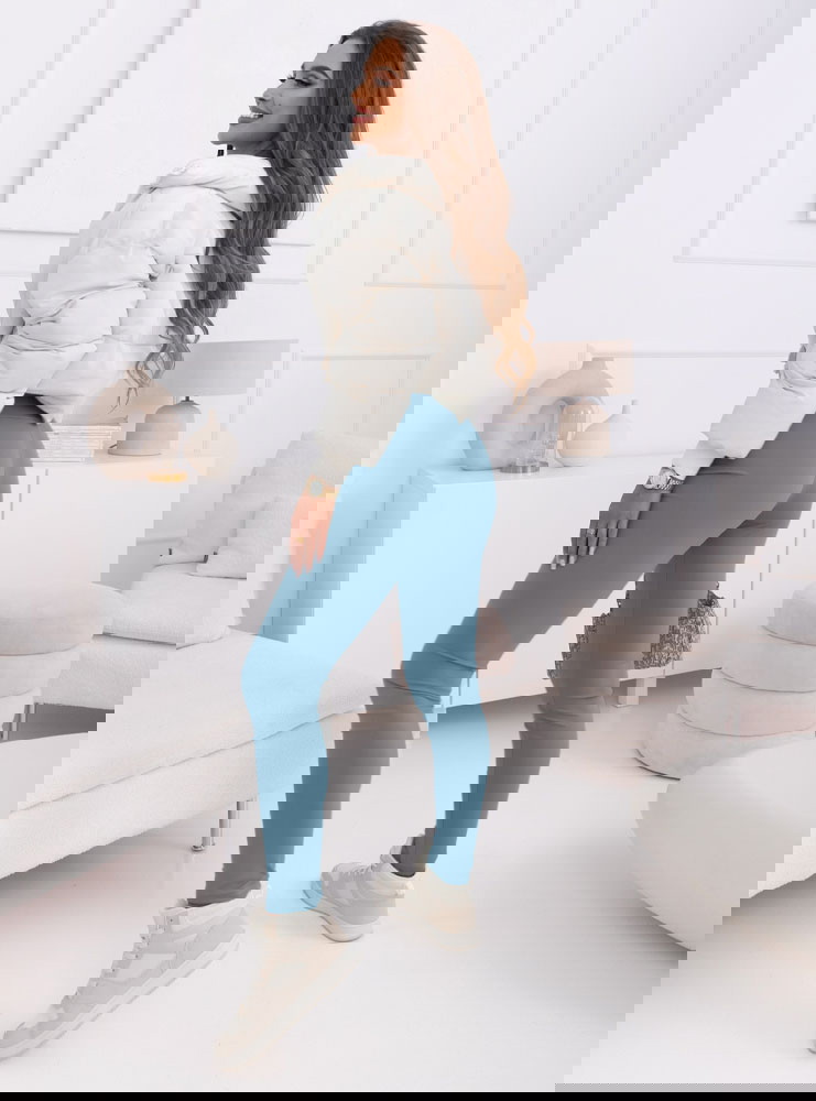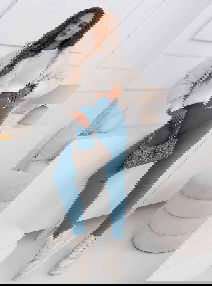 To wspaniała kombinacja komfortu i stylu. Jasny odcień błękitu nadaje legginsom lekkości i świeżości, a napis dodaje im modnej charakterystyki. Te legginsy są idealne zarówno na aktywność fizyczną, jak i na codzienne outfity. Modny napis nadaje im indywidualnego wyrazu, czyniąc je wyjątkowymi w swoim rodzaju.