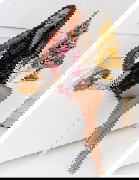 Wzorzysta sukienka z marszczeniami Kairi - D10 Sukienka ta pozwala na tworzenie efektownych stylizacji, które zawsze przyciągną wzrok.
