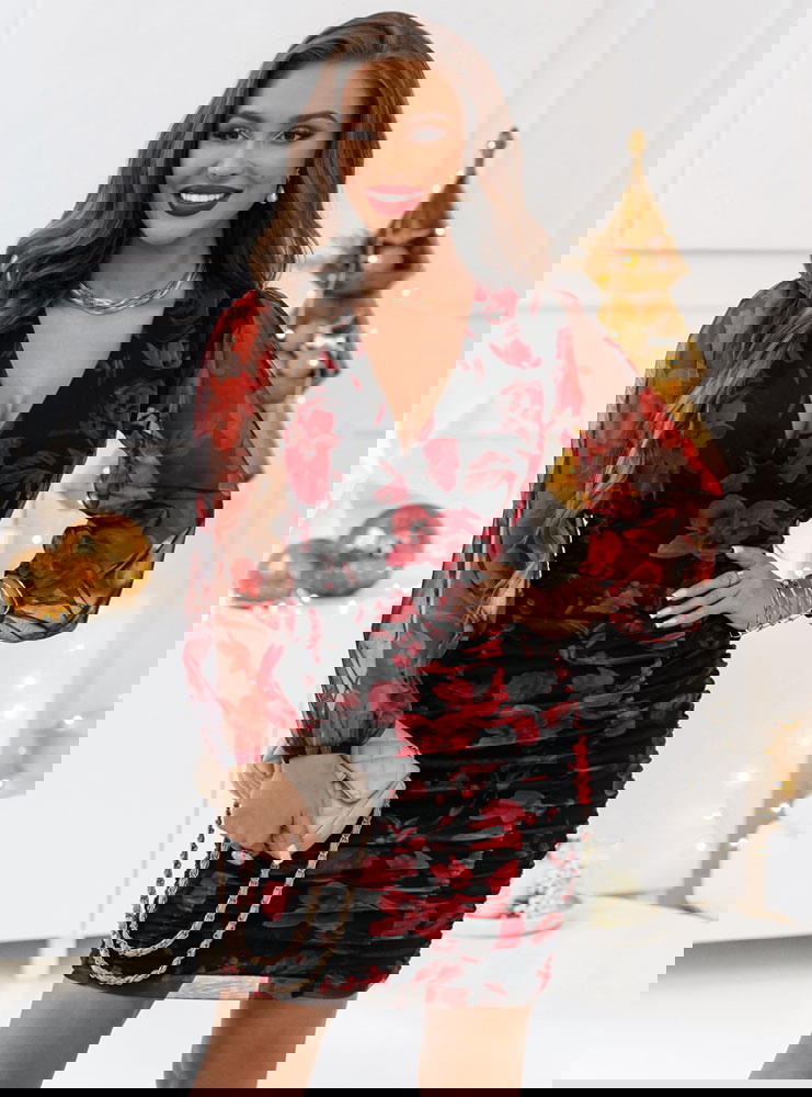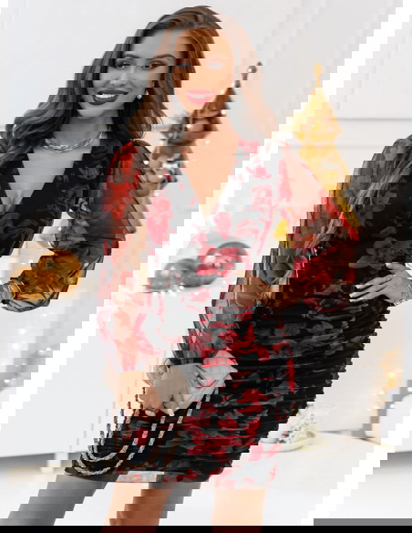 Wzorzysta sukienka z marszczeniami Kairi - D10