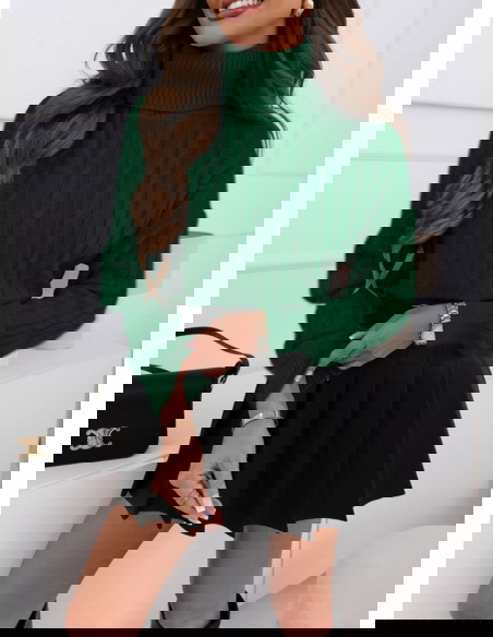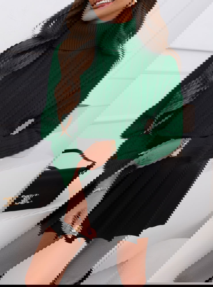 Szmaragdowy golf z ozdobnym splotem Isoline