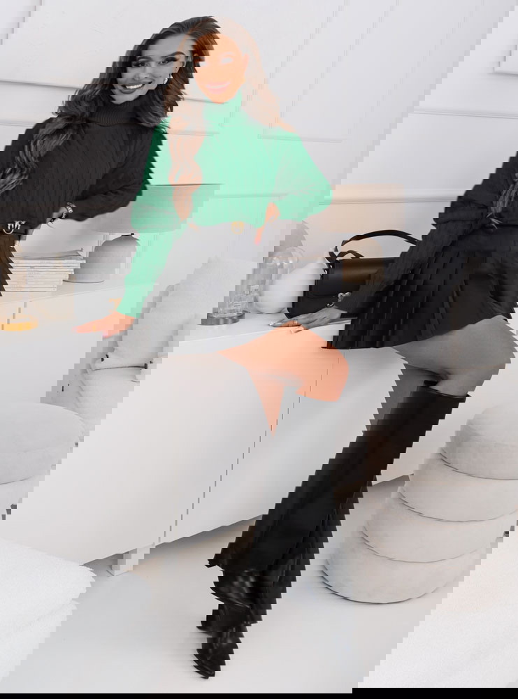 Szmaragdowy golf z ozdobnym splotem Isoline Możesz nosić go zarówno na bardziej formalne okazje, jak i na spotkania towarzyskie czy wieczorne wyjścia.