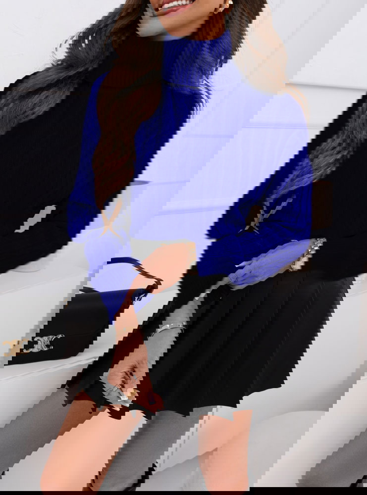 Chabrowy golf z ozdobnym splotem Isoline Możesz nosić go zarówno na bardziej formalne okazje, jak i na spotkania towarzyskie czy wieczorne wyjścia.