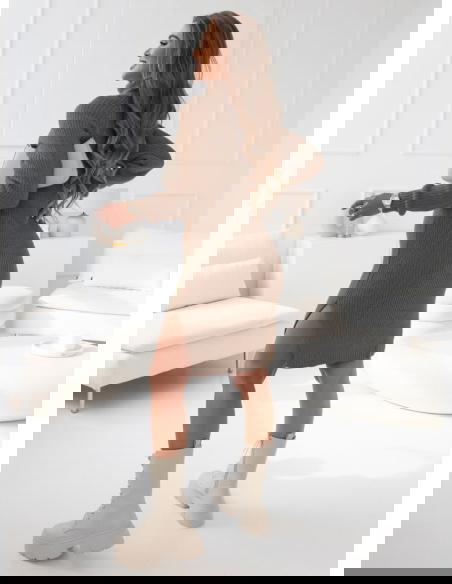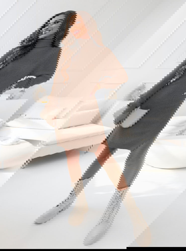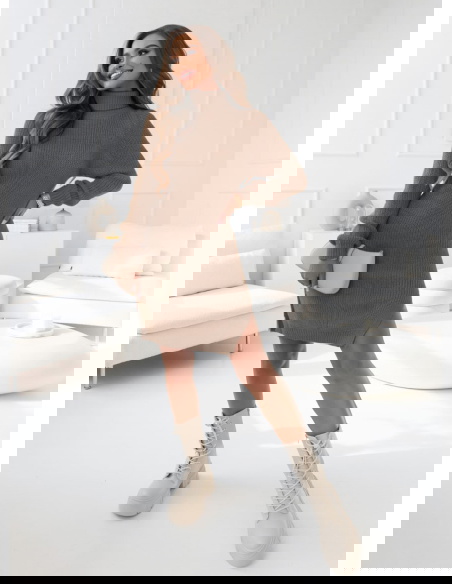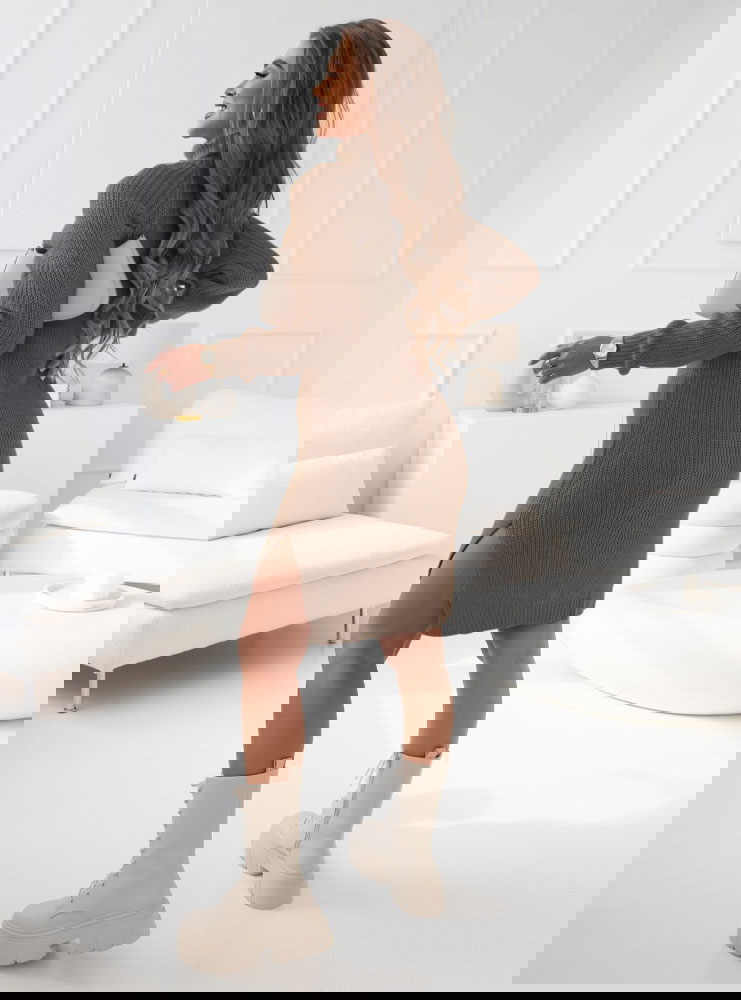 Klasyczna swetrowa sukienka z rozcięciem na nodze to idealany wybór na zimowe dni i chłodne dni. Dostępna w różnych kolorach.