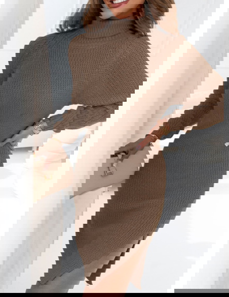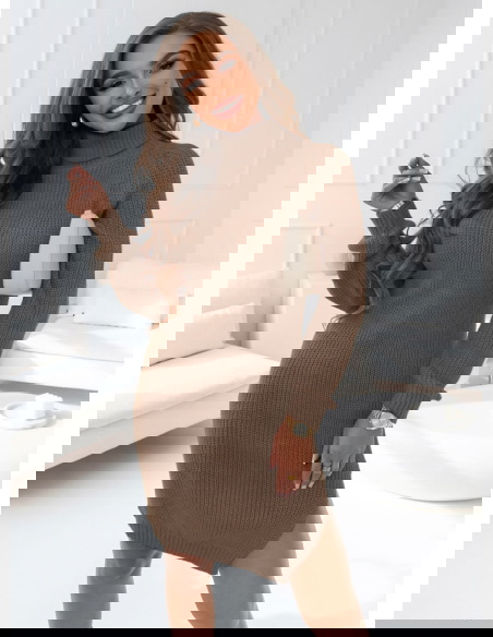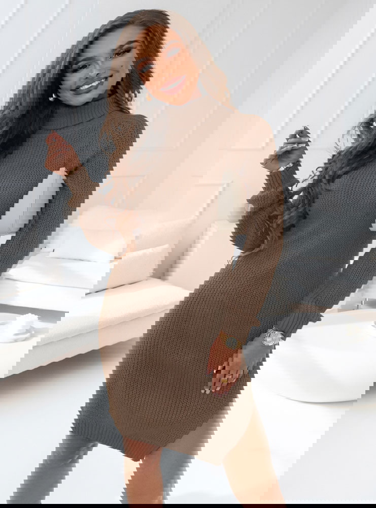 Sukienka swetrowa z golfem Mahala - odcienie brązu