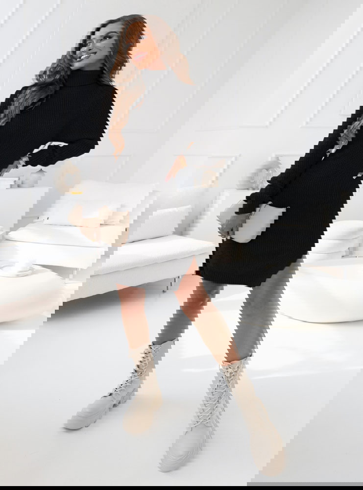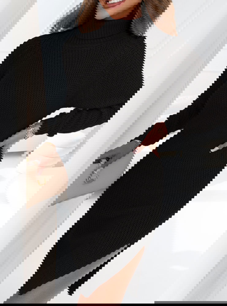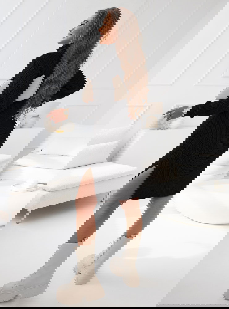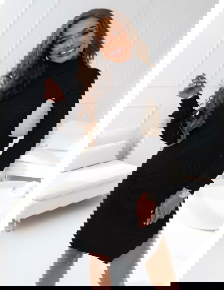 Czarna sukienka swetrowa z golfem Mahala