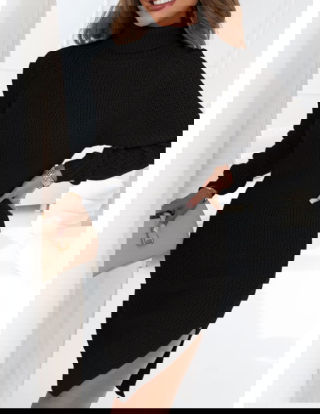 Nasza klasyczna swetrowa sukienka z rozcięciem na nodze to niezastąpiony dodatek do twojej garderoy na zimę i jesień. Dostępna jest w rożnorodnych kolorach.