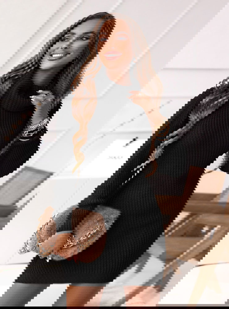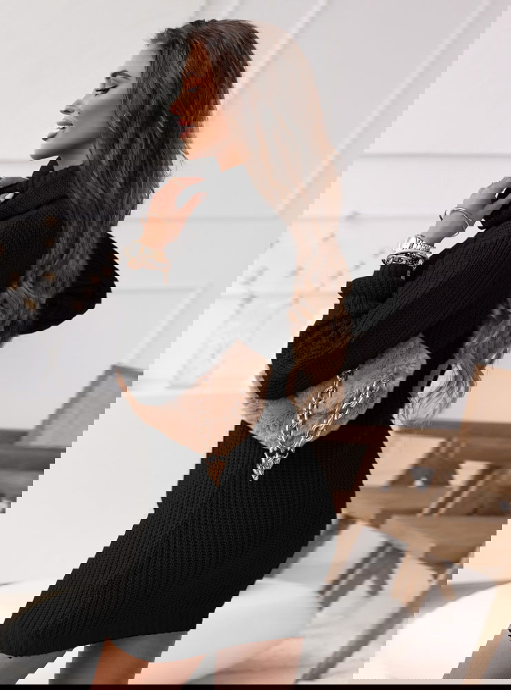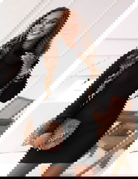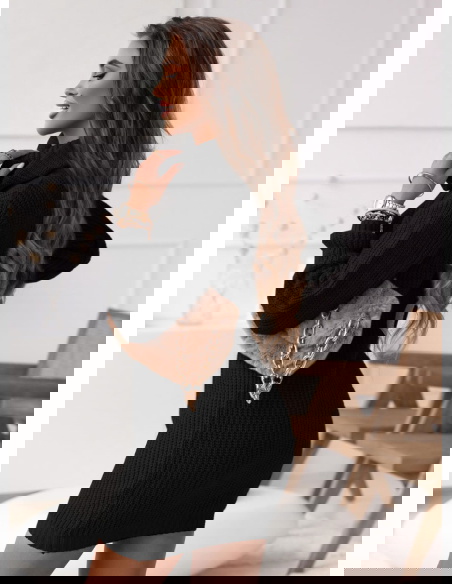 Czarna sweterkowa sukienka z golfem Rebbecca delikatna sukienka o przyjemnym dotyu materiał sprawia że noszenie jej to to czysta przyjemność.