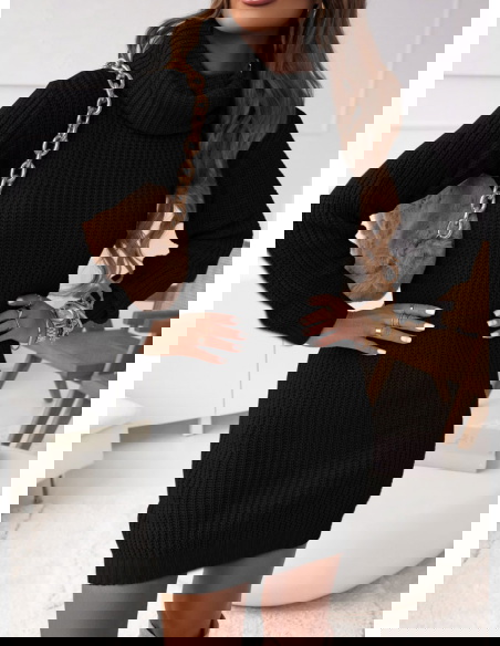 Czarna sweterkowa sukienka z golfem Rebbecca