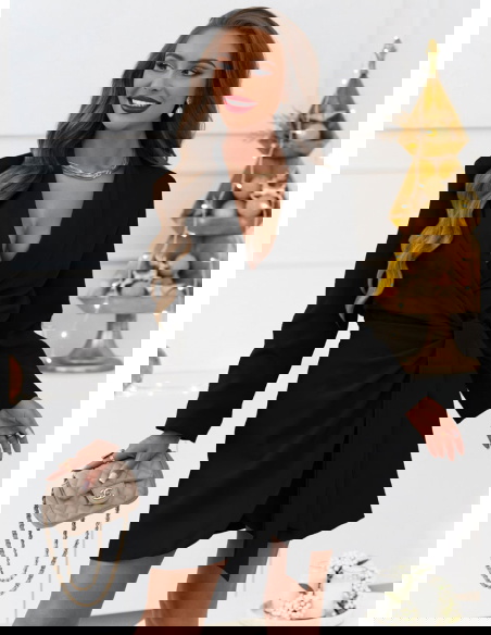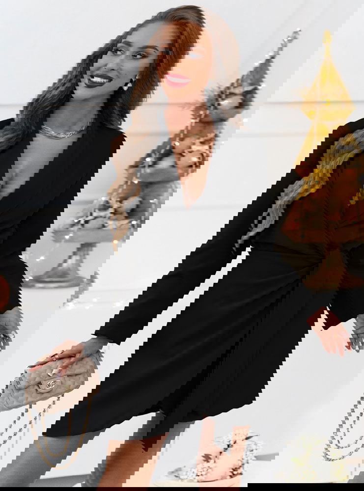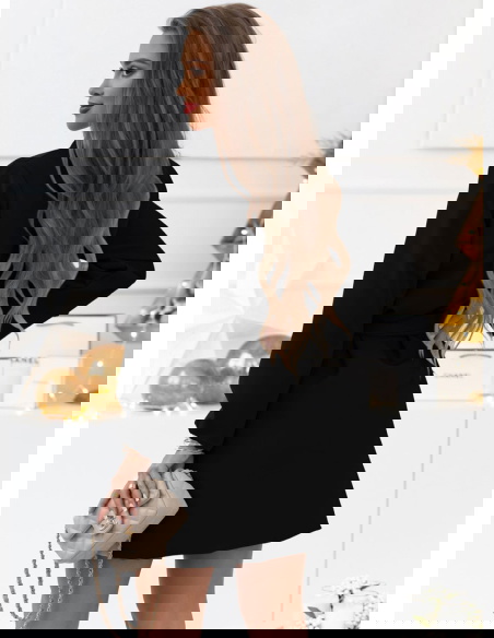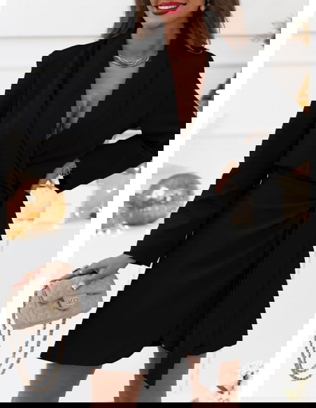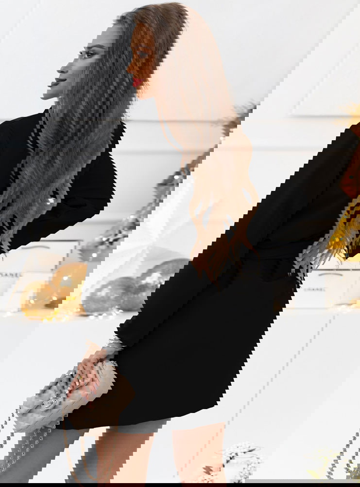 Czarna wiązana marynarkowa sukienka Zaria jej elagancki desing sprawia że świetnie nadaje się na wiele różnyc okazji od spotkań biznesowyc po uroczyste wydarzenia.