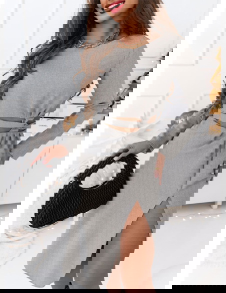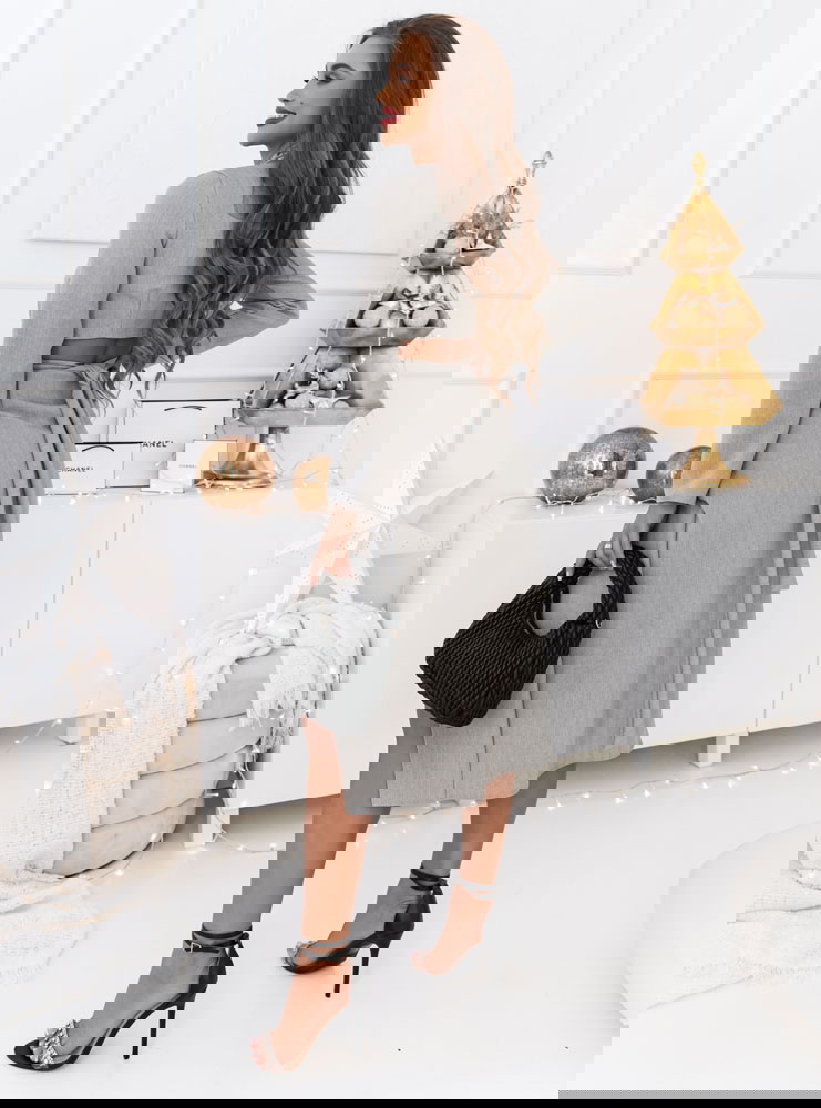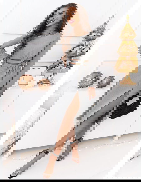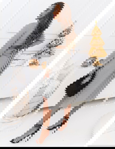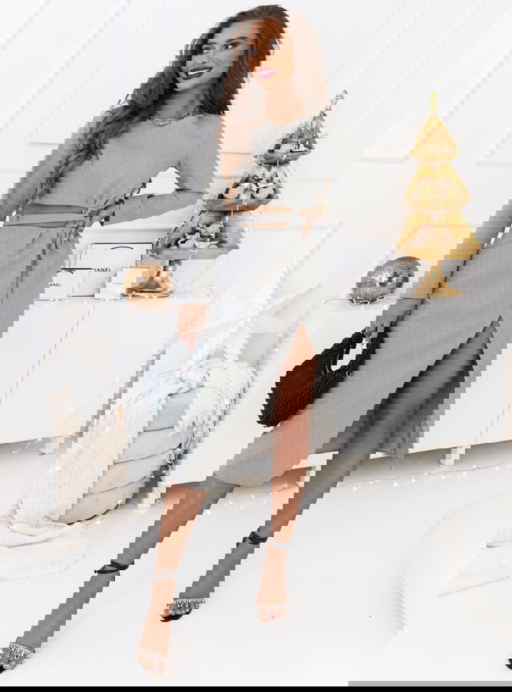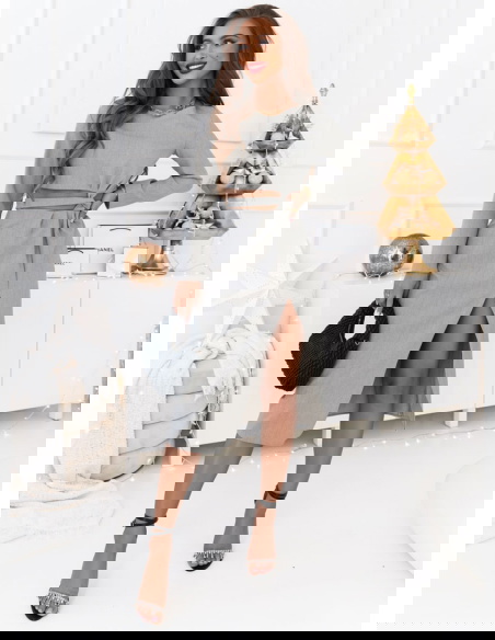 Szary wiązany komplet bluzka ze spódnicą Christina