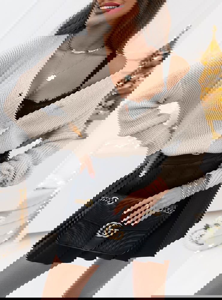 Beżowy rozpinany sweter Sevyn  Można go nosić zarówno na co dzień jak i na bardziej formalne okazje co sprawia że jest niezastąpionym elementem każdej garderoby.