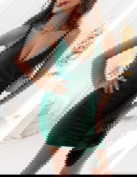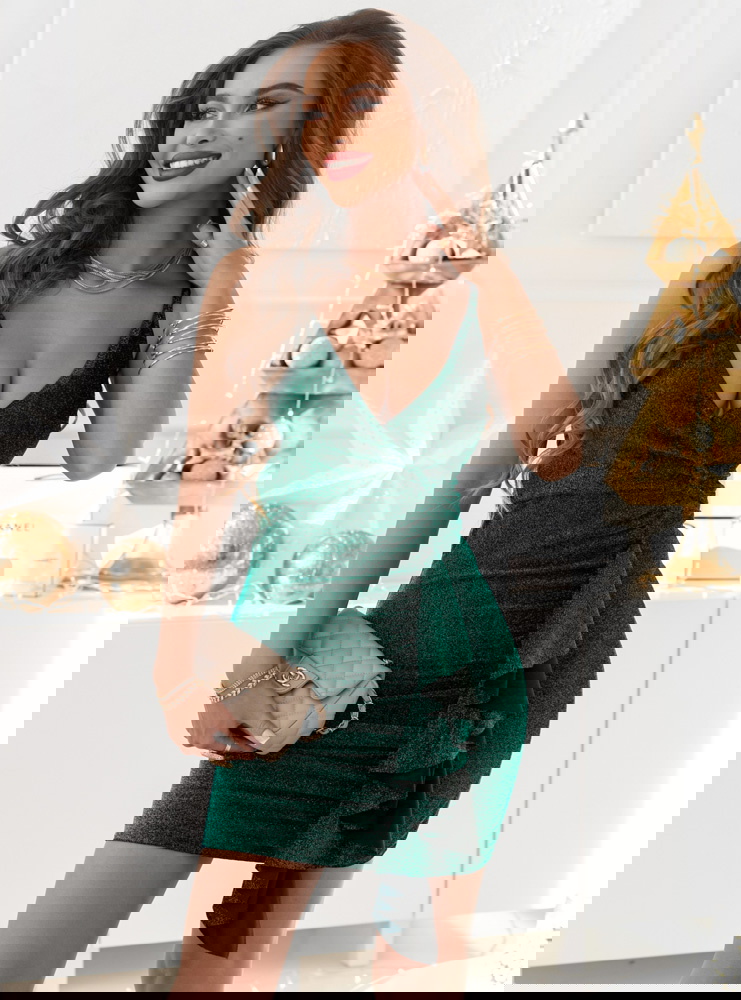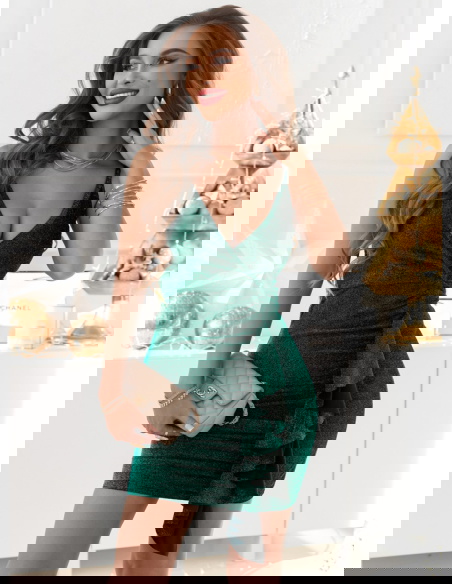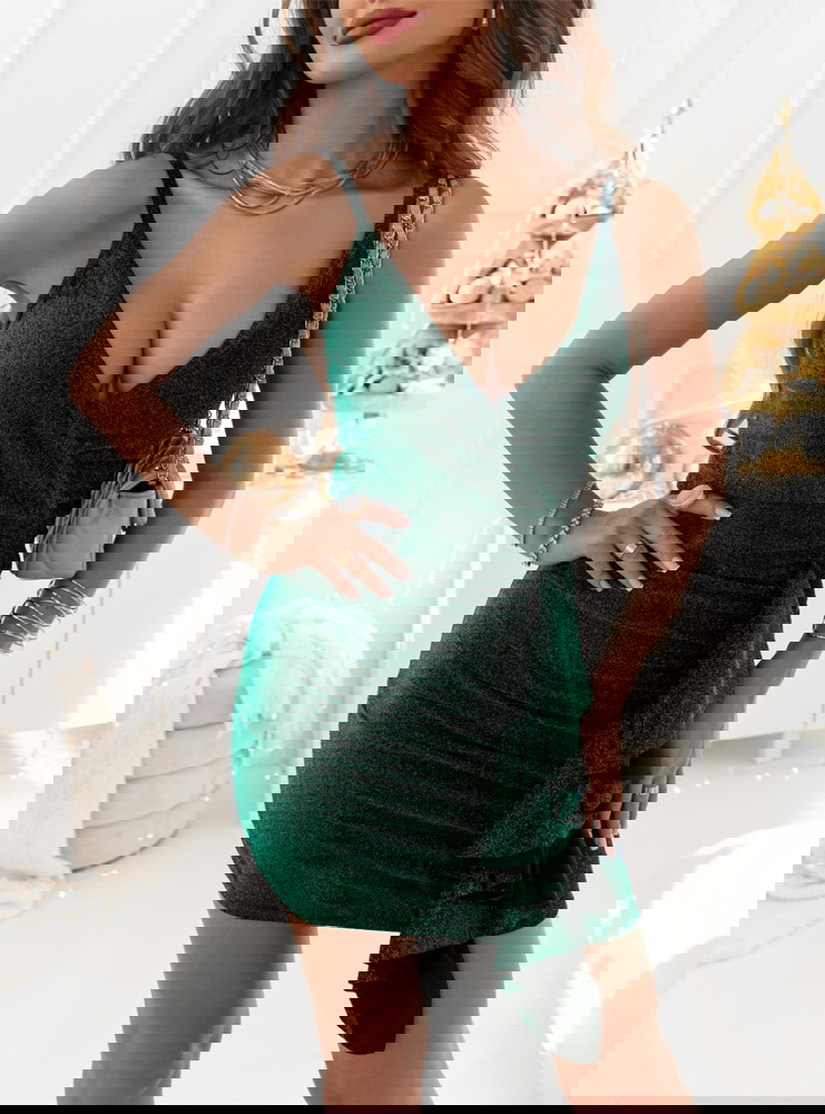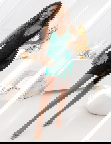 Sukienka idealna na zabliżające się Andrzejki lub inną okazję. Mamy dla ciebie coś specjalnego, błyszcząca sukienka na ramiączkach z ozdobną falbanką.