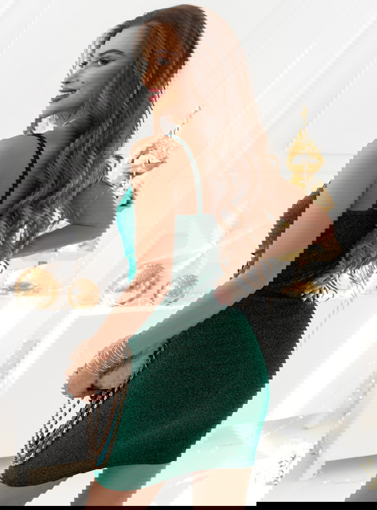 Byszcząca dopasowana sukienka Loznnko- butelkowa zieleń sukienka cała pokryta brokatem dzięki czemu będziesz efektownie wyglądać przez cały wieczór a sukienka będzie się pięknie mienić