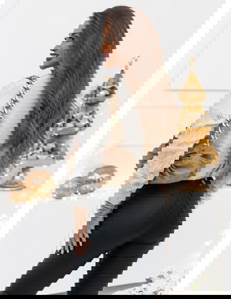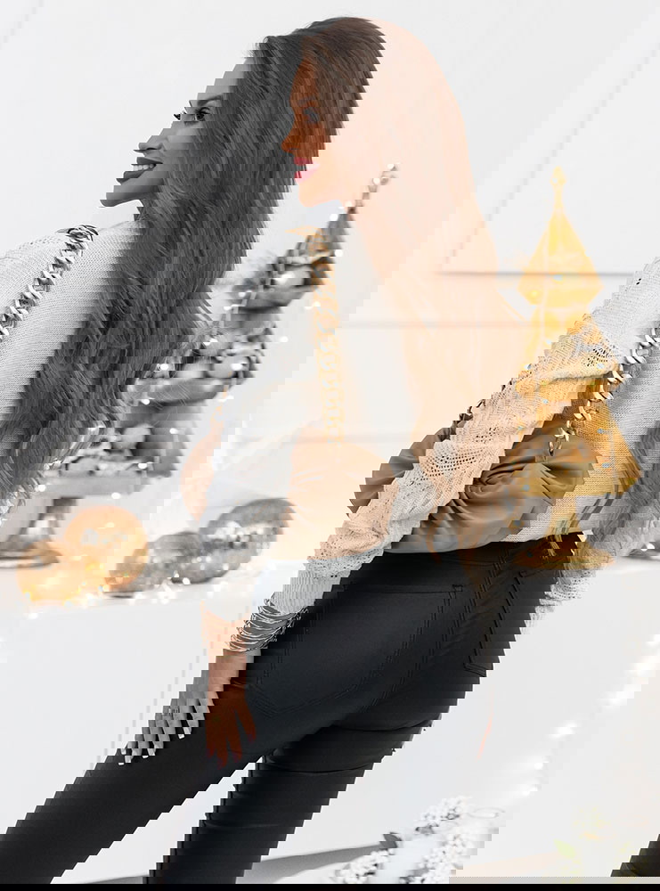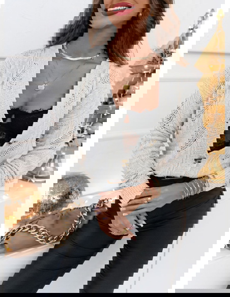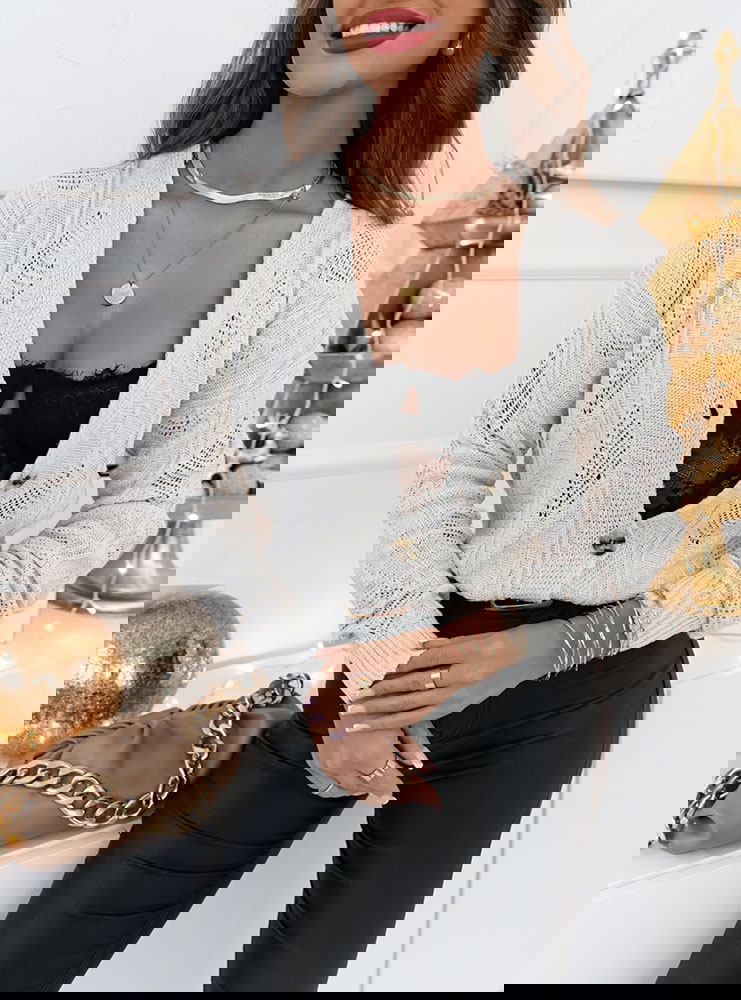 Ażurkowy splot dodaje sweterkowi delikatności i lekkości. Sweterek który przywita jesień w stylu, nasz sweterek z ażurkowym splotem i guzikami.
