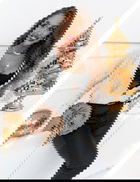 Modelka prezentuje produkty o rozmiarach S/M