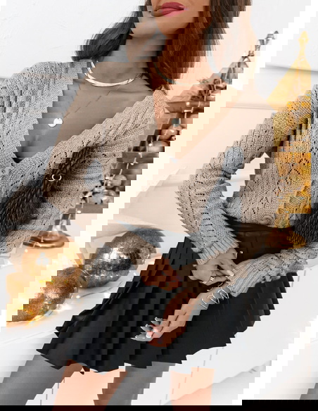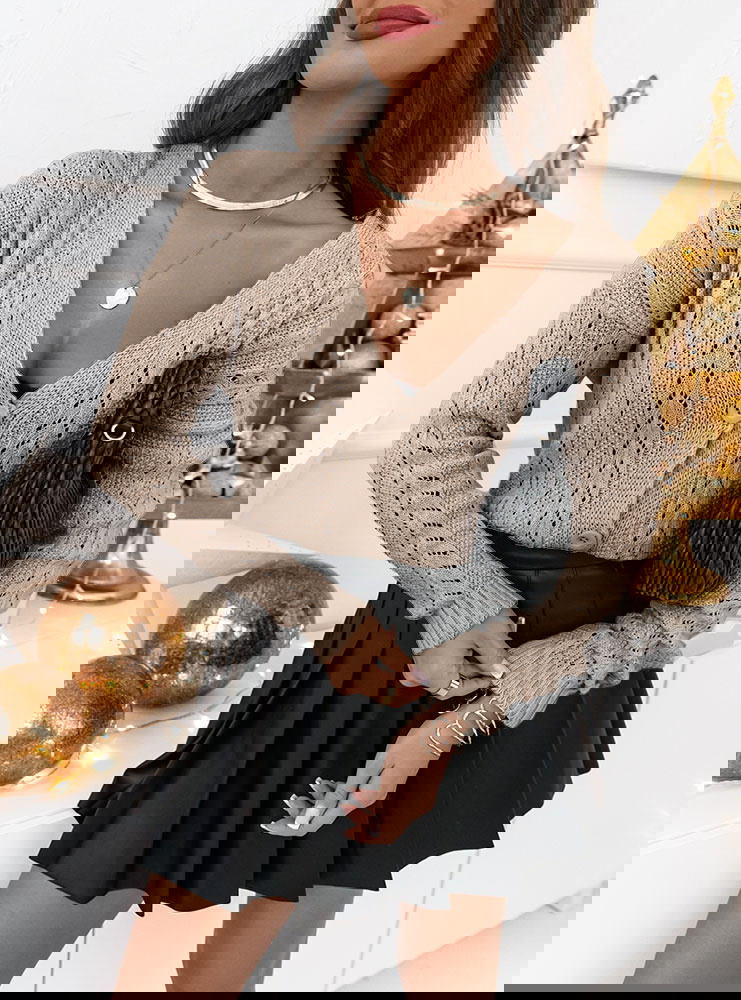 Ażurowy sweter zapinany na guziki Uziaa - latte