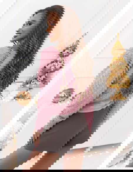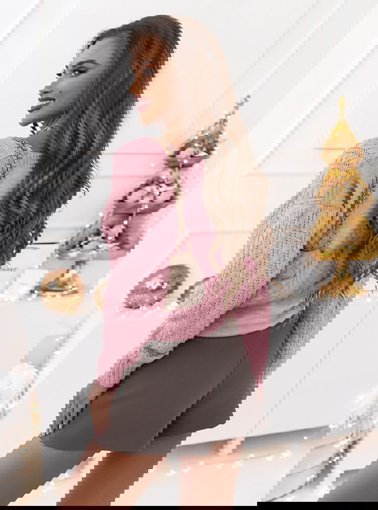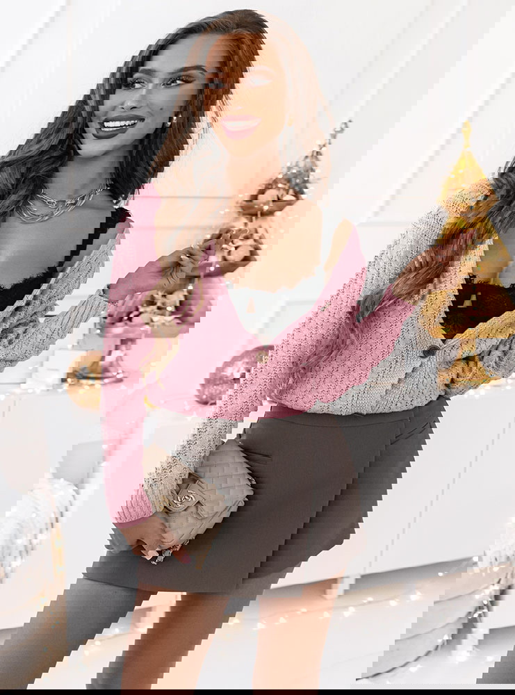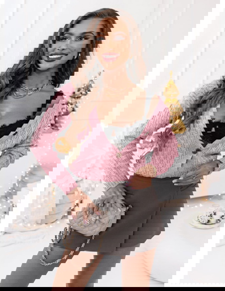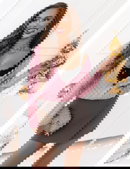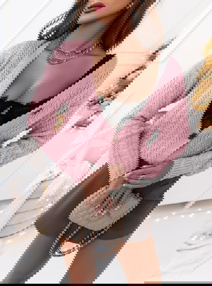Pudrowy rozpinany sweter z ozdobnymi warkoczami Mocco