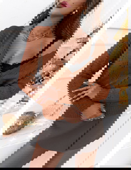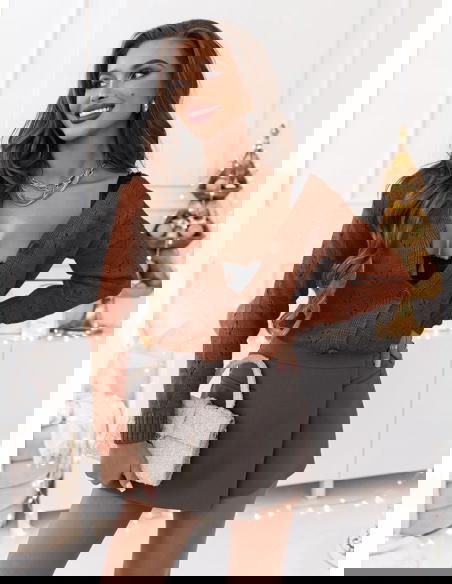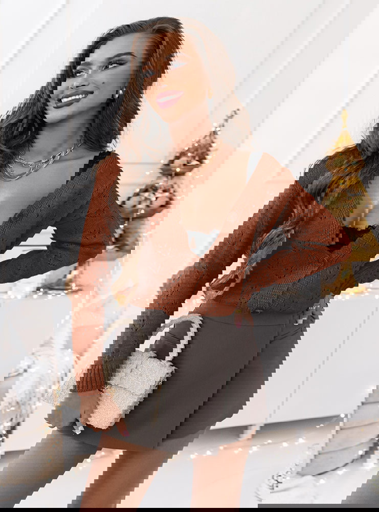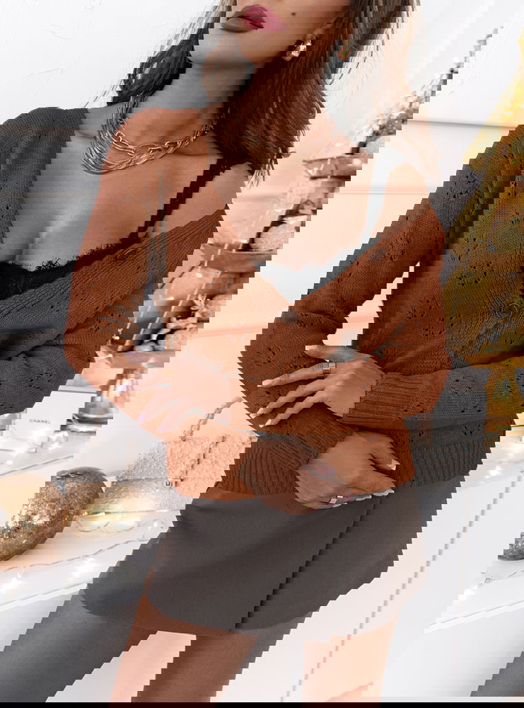 Ceglasty sweter zapinany na guziki Wamma ciesz się jesienia w najlepszy możliwy sposób i dodaj trochę ciepła i uroku do swojej jesiennej garderoby