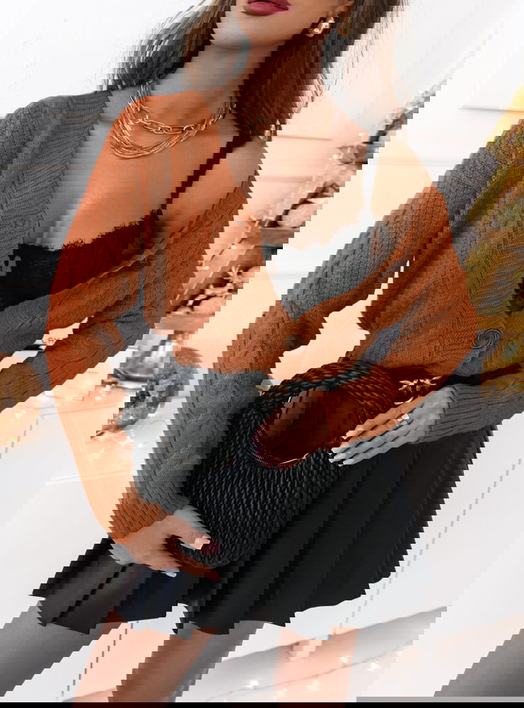 Sweter zapinany na guziki Tawana- ceglasty znajdź swój rozmiar i wybierz ulubiony kolor aby dodać trochę jsiennego uroku do swojej garderoby, niech ta jesień będzie pełna ciepła i stylu.
