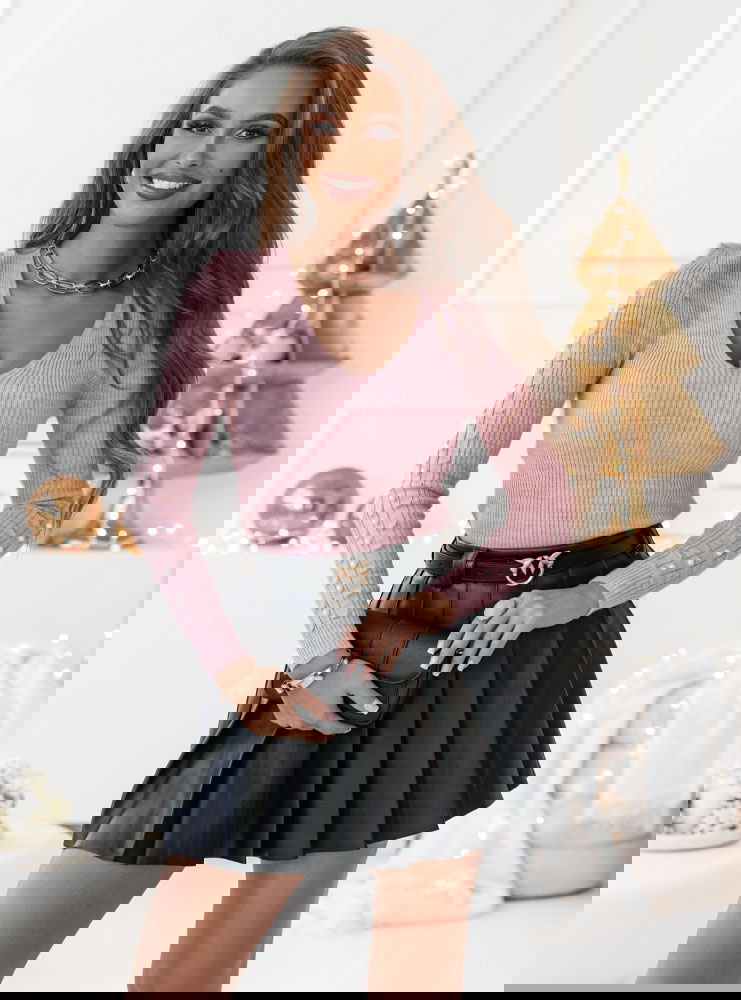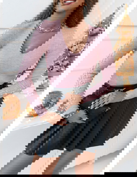 Pudrowy sweter z perełkami na rękawach Audde niezależnie od tego czy nosicie go do spodni, spódnicy ten sweter zawsze prezentuje się świetnie, a najlepsze jest to że wystepuje w szerokiej gamie kolorystycznej.