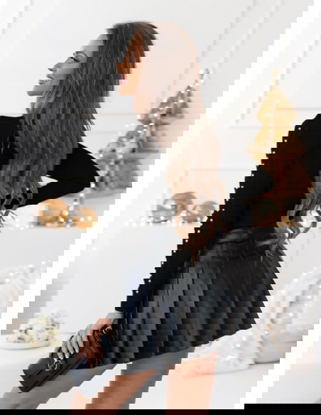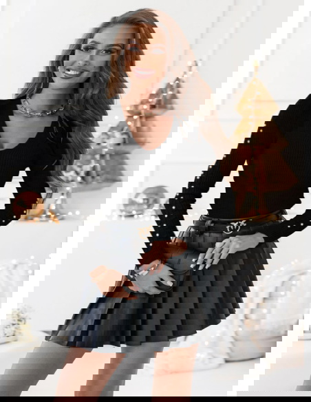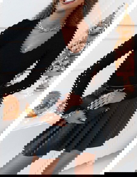 Czarny sweter z perełkami na rękawach Audde