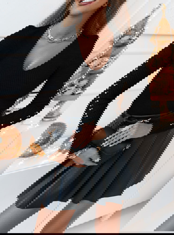 Czarny sweter z perełkami na rękawach Audde niezależnie od tego czy nosicie go do spodni, spódnicy ten sweter zawsze prezentuje się świetnie, a najlepsze jest to że wystepuje w szerokiej gamie kolorystycznej.