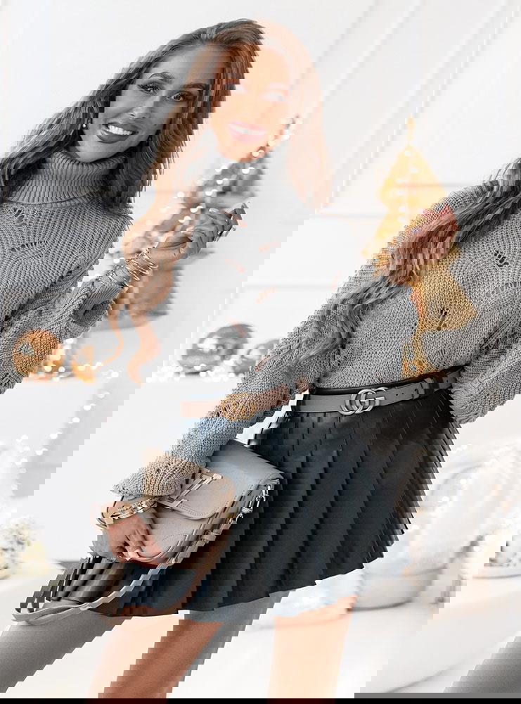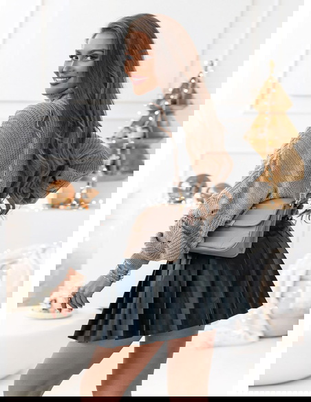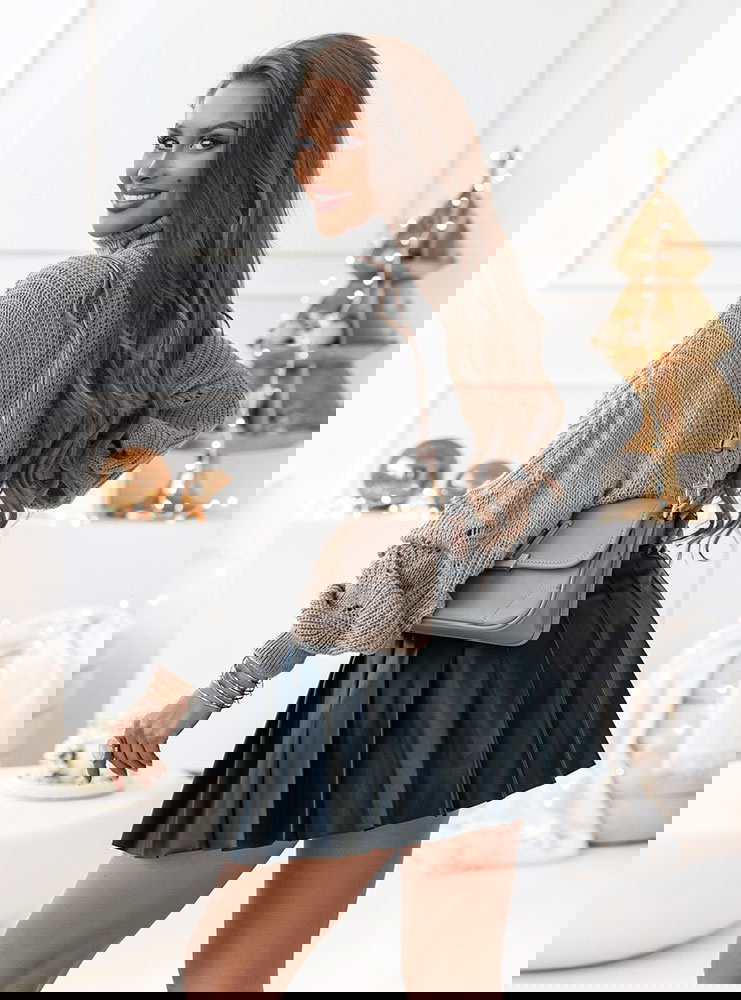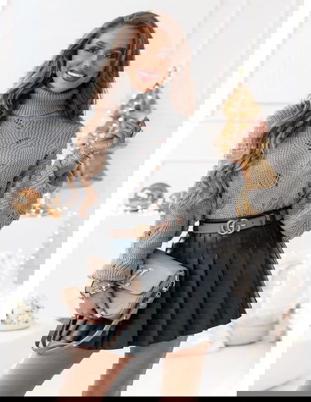 Szary sweter oversize z golfem Monekka jego uniwersalny kolor sprawia że pasuje do wielu stylizacji zarowno tych codziennych jak i okazjonalnych.