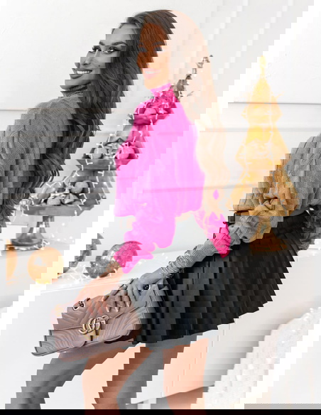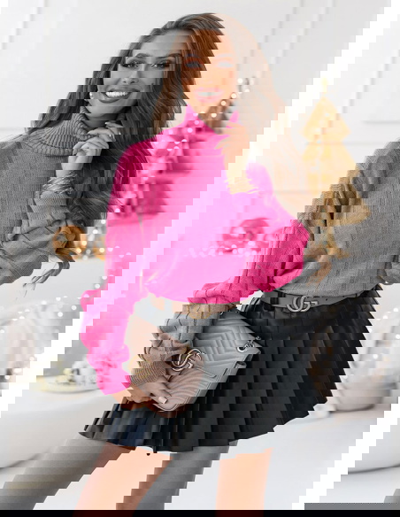 Ten rozświetlający różowy sweter jest odzwierciedleniem kobiecej elegancji i nowoczesnej wygody. Zaprojektowany z myślą o wygodzie i stylu, posiada on luźniejszy krój, który nadaje casualowego charakteru, jednocześnie podkreślając sylwetkę. Sweter charakteryzuje się bogatym, różowym odcieniem, który przyciąga wzrok i dodaje blasku każdej stylizacji.