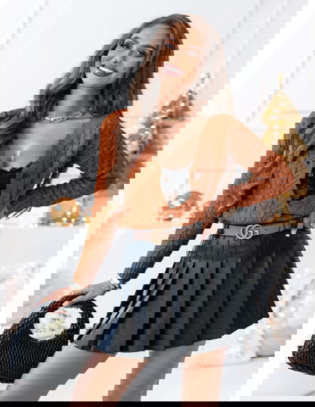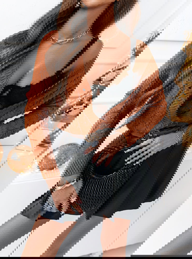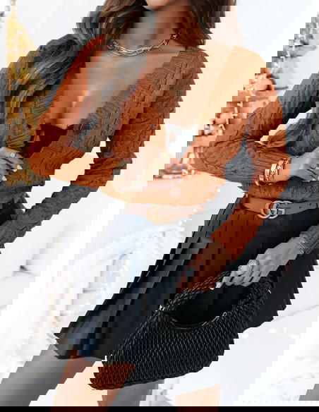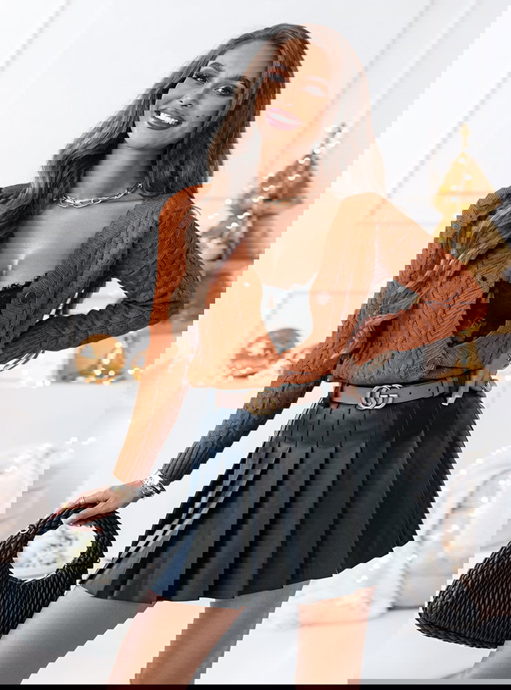 Ceglasty sweter z ozdobnymi warkoczami Selence wykonany z miękkiej przyjemnej w dotyku tkaniny zapewniając maksymalny komfort i ciepło w chłodniejsze dni.