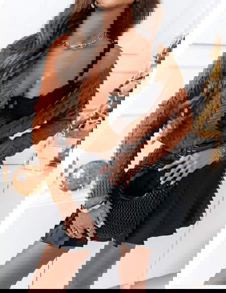 Ceglasty sweter z ozdobnymi warkoczami Selence