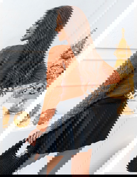 Sweter ma głęboki dekolt v który doskonale komponuje się z wieloma sylizacjami. Elegancki sweter z ozdobnym splotem warkoczowym to must-have w szafie każdej kobiety ceniącej sobie klasyczny styl z nowoczesnym akcentem.