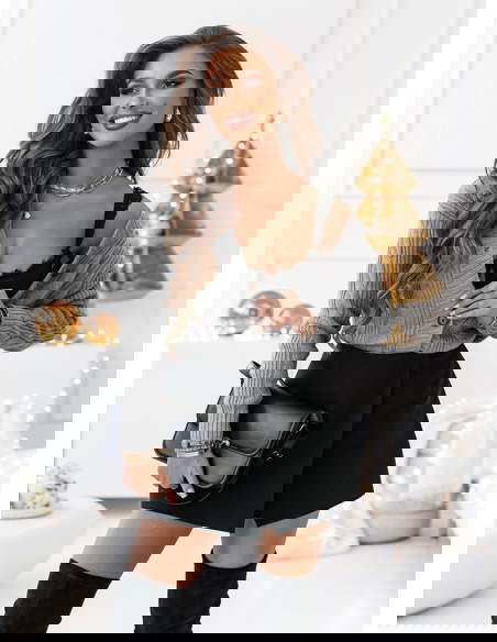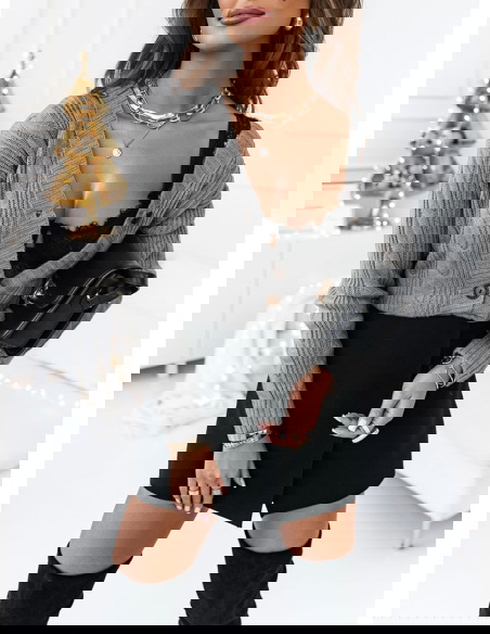 Szary rozpinany sweter z ozdobnym splotem Bennice